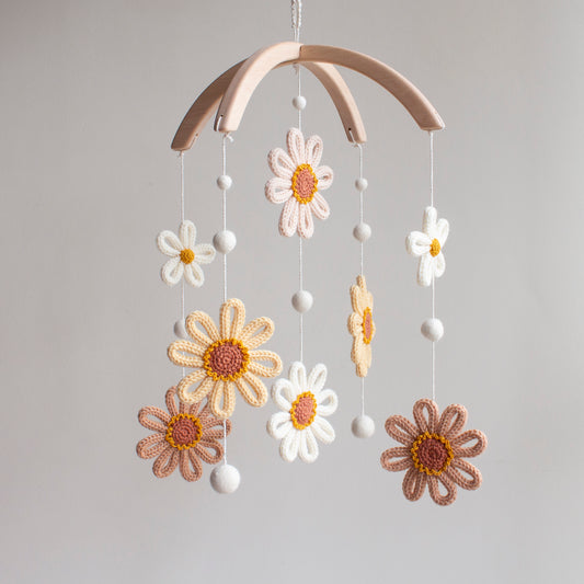 Baby mobile Daisies multicolored - Botanical wildflower nursery decor - flowers crib mobile