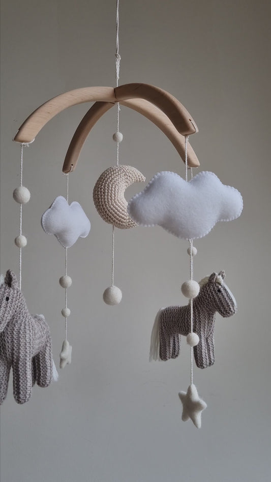 Horse baby mobile - Neutral Nursery Decor with Ponies, Moon, Stars & Clouds