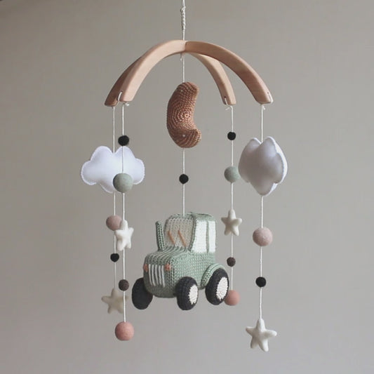 Green Tractor & Chickens Baby Mobile – Farm Nursery Decor