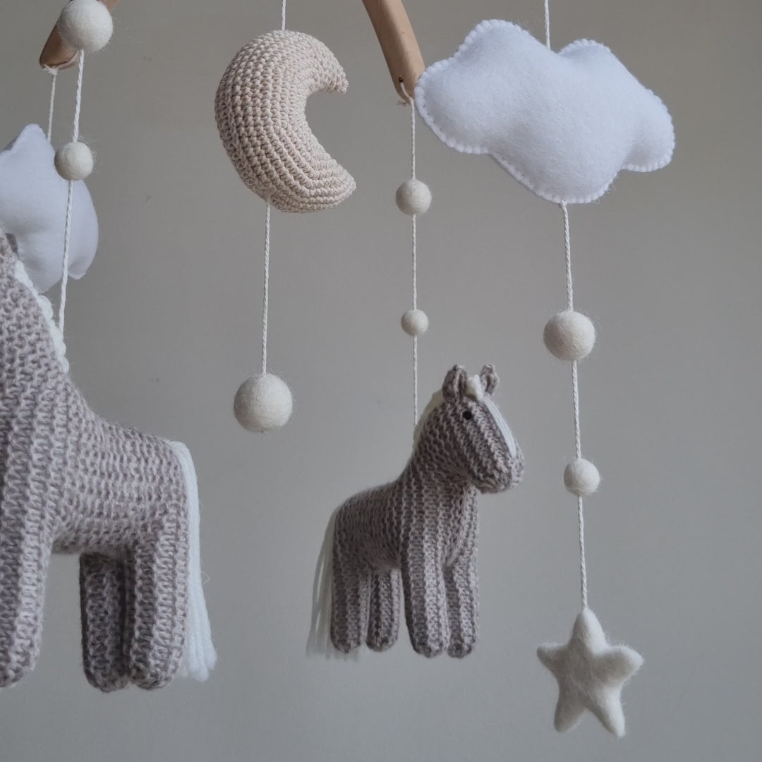 Grey Horses Baby Mobile – Neutral Pony & Celestial Nursery Decor